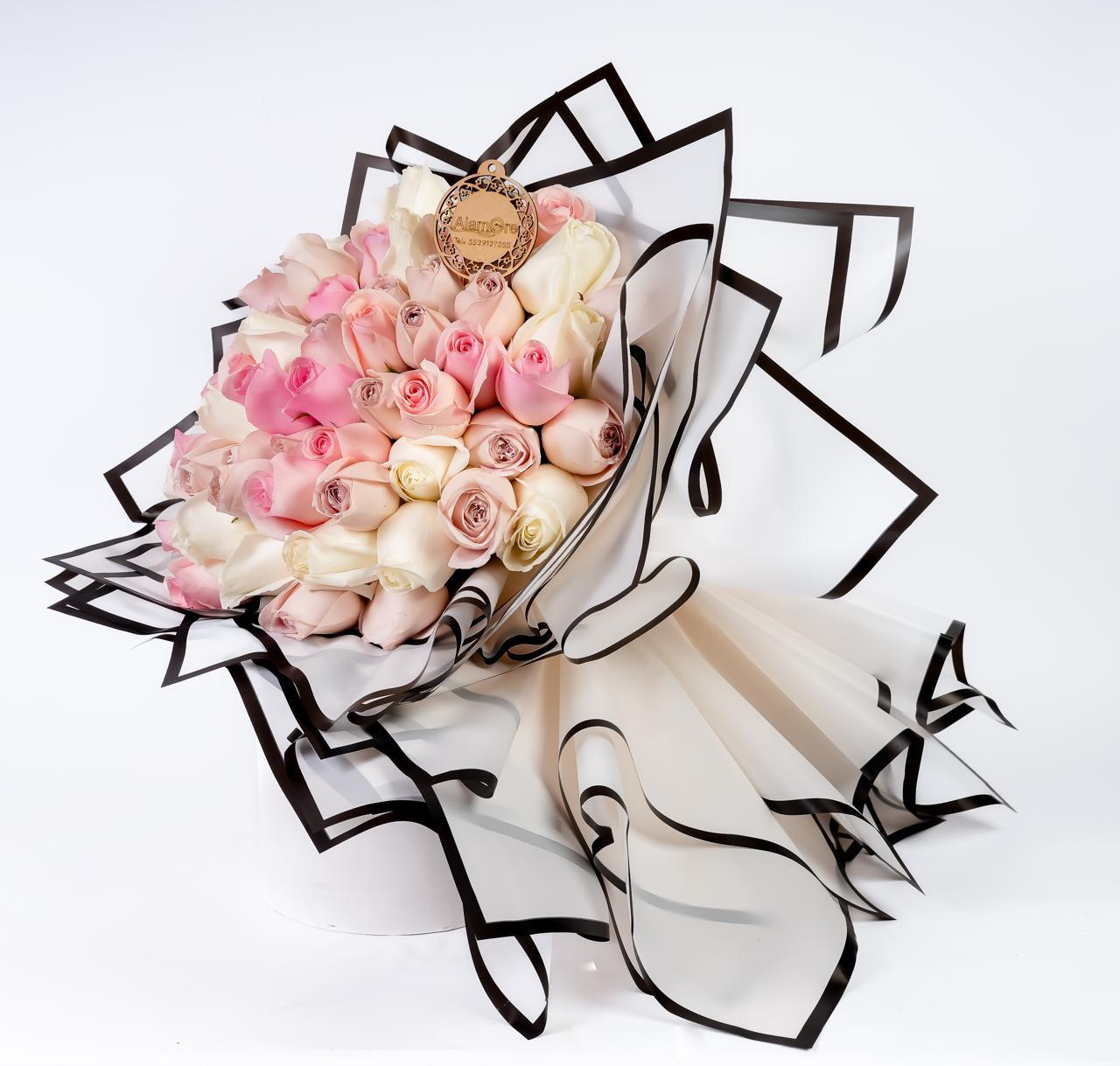 Bellísimo ramo de 150 rosas en tonos rosas y blancos